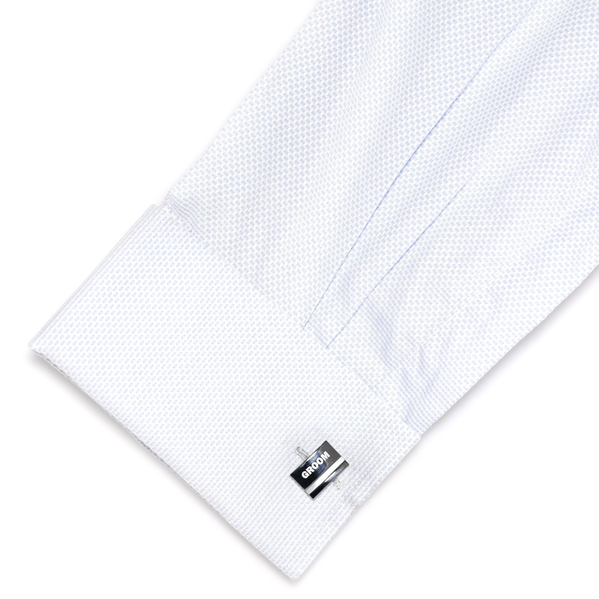 Comes in a stylish gift boxAn elegant classic gunmetal cufflink style for your special day. These cufflinks feature a "Groom" laser etched on the cufflinks and a Mother of Pearl underneath and can be worn on ANY dress shirt with Shirt Cuff Adapter. They also come presented in a stylish box!