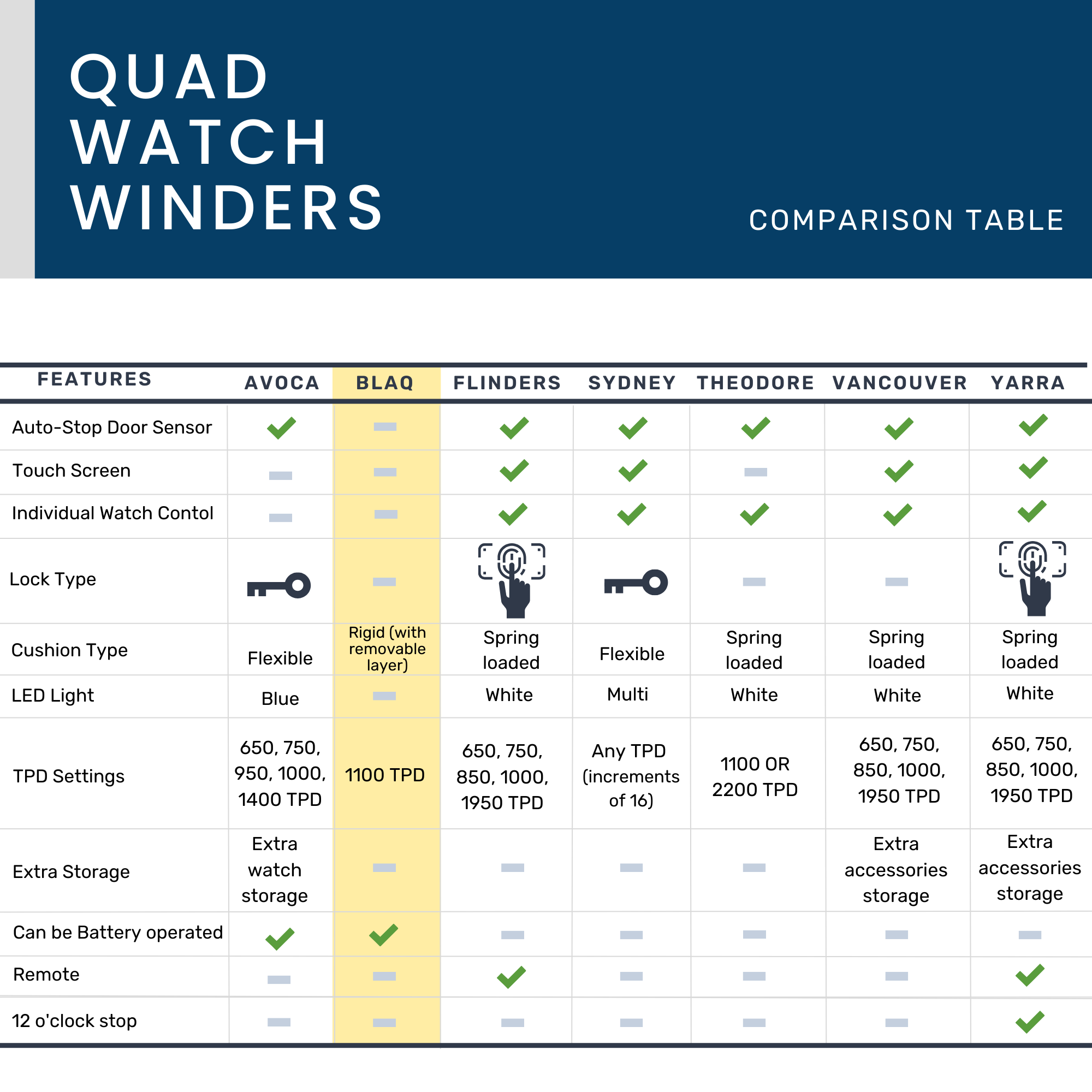• The BLAQ watch winders have a wrist size watch cushions of 16cm - 19cm