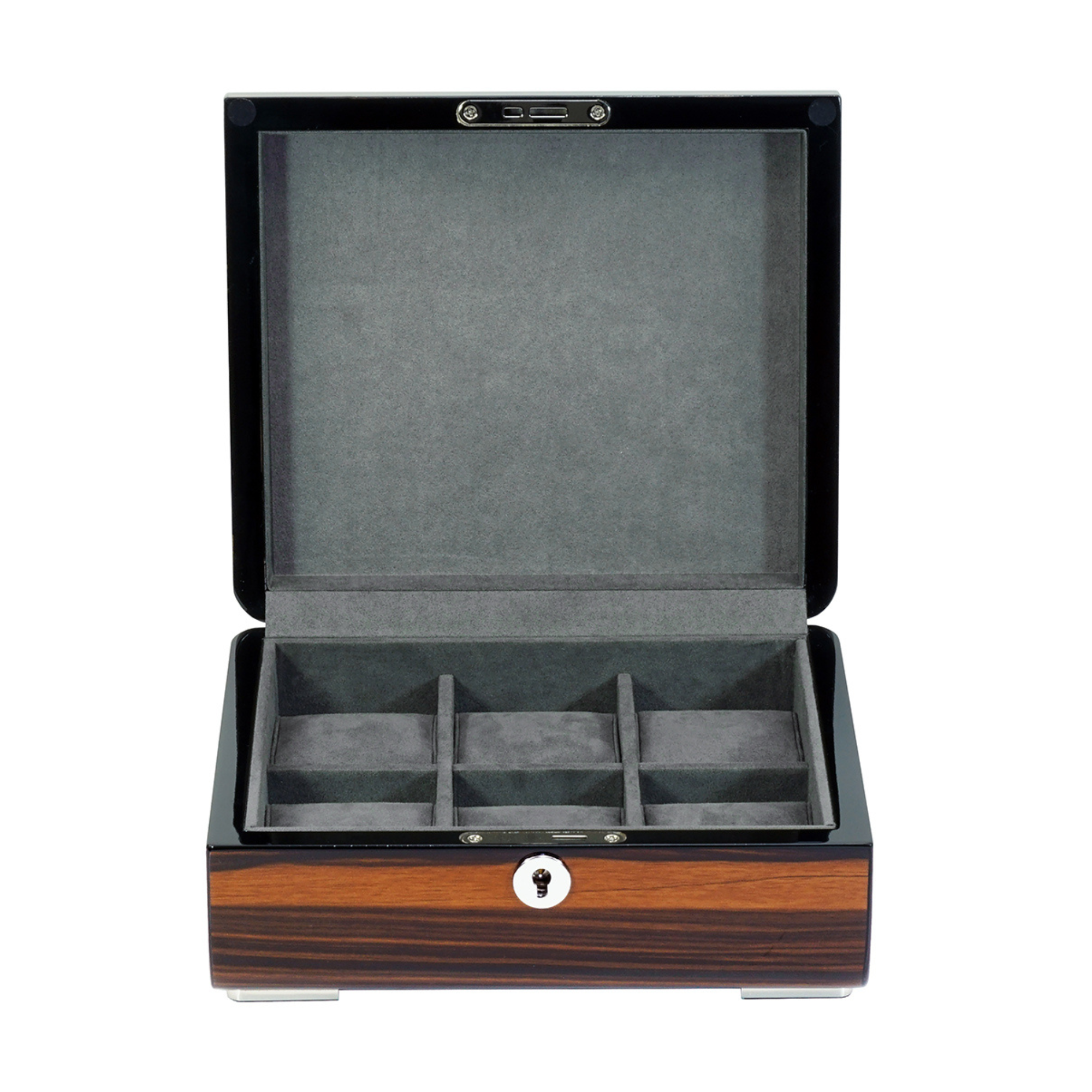 Keep your watches safe and dust free with the Watch Box for 6 watches in Shiny Wooden Ebony finish. Comes with a lock to safely store your watches.